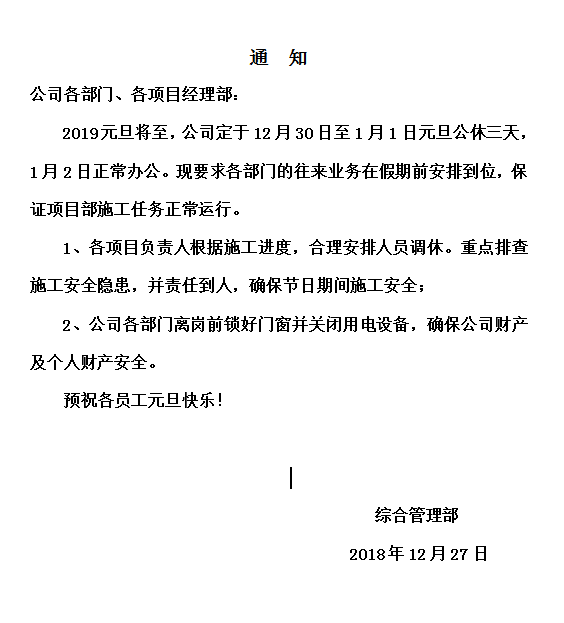 2019元旦放(fàng)假通知